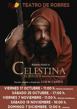 Si usted, querido espectador, ha disfrutado ya del montaje de LA CELESTINA no puede perderse CELESTINA El BULULÚ, igualmente versionado y adaptado por Luis M. Casáus sobre la inmortal obra de Fernando de Rojas para el mejor de los bululúes: Roberto Nistal. El gran actor, cual comediante del Siglo de Oro, interpreta magistralmente los doce personajes creados por el autor pueblano… Nistal se mete en la piel de cada uno de ellos, especialmente en el de esa puta, alcahueta y hechicera que lleva en sus ojos el precio de la belleza perdida, la independencia a dentelladas, la inteligencia oculta... CELESTINA es el poder femenino en la sombra, y también la víctima de su propia astucia y avaricia.